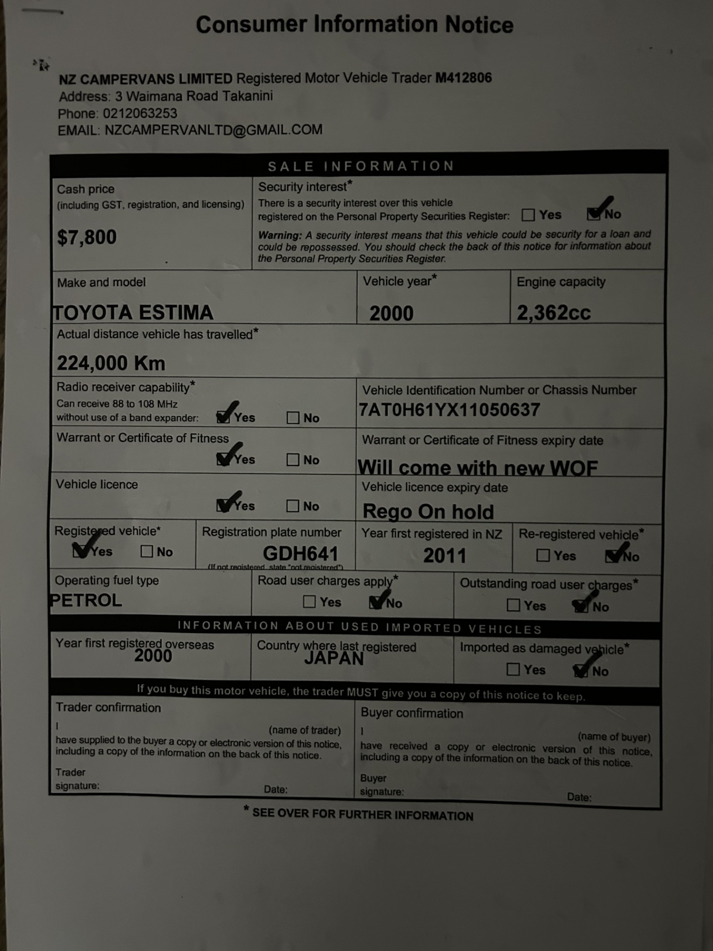 • New 1 Year WOF